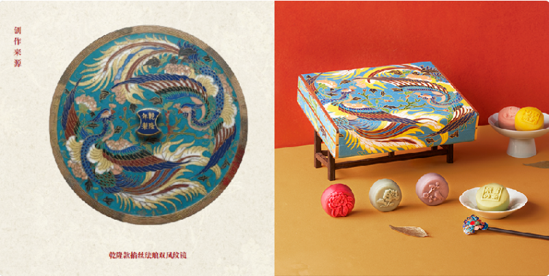 繼去年的“風(fēng)雅頌”主題月餅后,今年,繼續(xù)延續(xù)“中國(guó)風(fēng)”,產(chǎn)品設(shè)計(jì)從古董瓷器、掐絲琺瑯、宋徽宗喜愛(ài)的字畫等文物中獲得靈感,將傳統(tǒng)文化融入月餅。僅僅兩款禮盒的產(chǎn)品名稱,就足以使人腦補(bǔ)出中秋月朗、石榴滿園,鳳凰于飛、??其羽的?麗畫面。