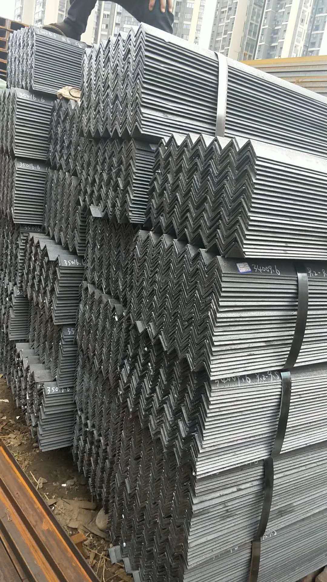 角鋼俗稱角鐵、是兩邊互相垂直成角形的長條鋼材。有等邊角鋼和不等邊角鋼之分。等邊角鋼的 兩個邊寬相等。其規(guī)格以邊寬×邊寬×邊厚的毫米數(shù)表示。如“∠30×30×3”,即表示邊寬為 30毫米、邊厚為3毫米的等邊角鋼。也可用型號表示,型號是邊寬的厘米數(shù),如∠3#。型號不表示同一型號中不同邊厚的尺寸,因而在合同等單據(jù)上將角鋼的邊寬、邊厚尺寸填寫齊全,避免單獨用型號表示.